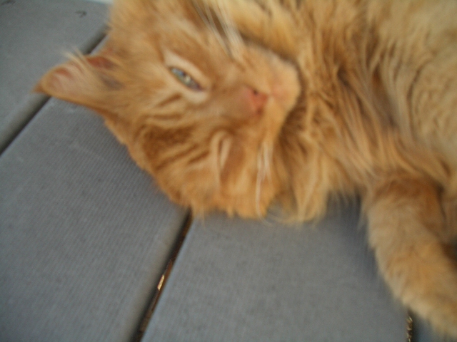 It was windy, and our favorite assistant gardener helpfully watched the empty cells blow off the deck.  I like this photo, because it looks like he’s laughing at us.  Which he probably is – after all, we’re working hard and he’s napping in the sun.