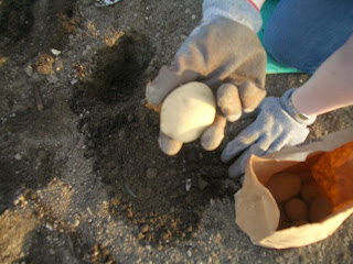 Today I planted the potatoes. I love planting potatoes, it’s so easy: