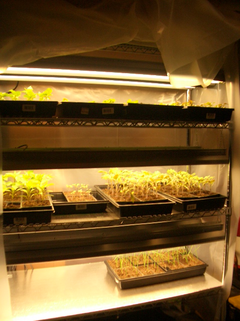 This year, J started putting foam core underneath the seed trays & heating mats, and covering the entire rack with plastic to create a mini greenhouse.  It seems to be working because we’re getting really great returns on the number of seeds that are being planted.